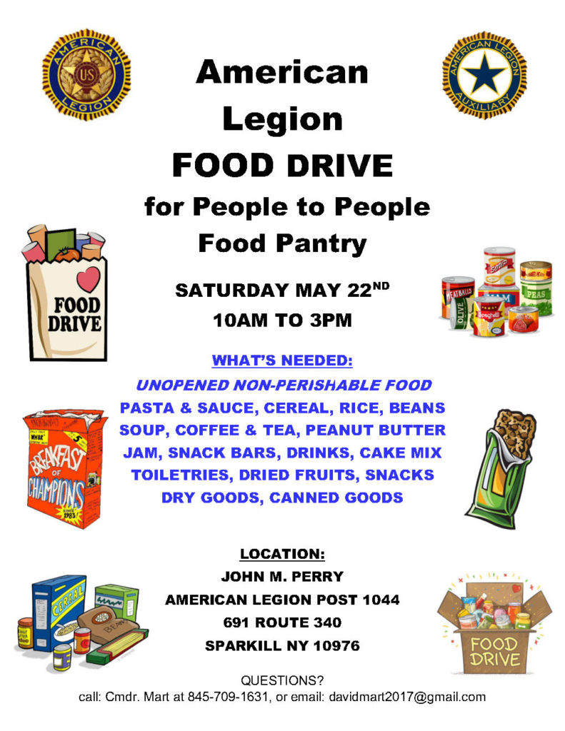 The John M. Perry Post #1044 of the American Legion will be hosting a Food on Saturday, May 22nd, from 10 am to 3pm.
