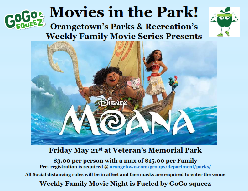 The Town of Orangetown Parks and Recreation Department will show Moana as the next movie in their weekly Family Movie Series, on Friday, May 21st. Pre-registration is required, click here to do so.
