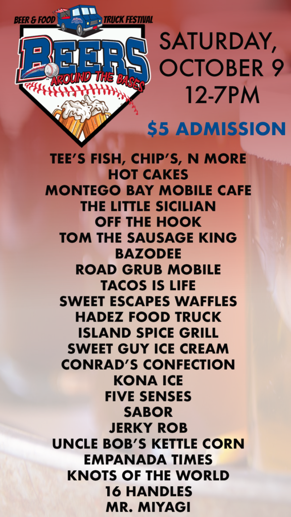 The Beers Around the Bases Beer & Food Truck Festival will be held on Saturday, October 9th from 12 to 7pm at Palisades Credit Union Park.