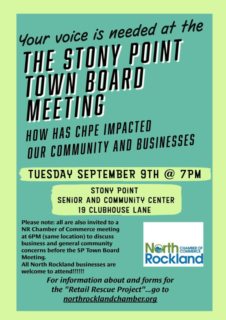 Chambers of Commerce such as the North Rockland Chamber typically step in as intermediaries for such rifts between municipalities and businesses. In the case of the North Rockland Chamber, several meetings have already been conducted in Stony Point and Haverstraw. The next is set for September 9th at 6 pm, at the Stony Point Community Center.